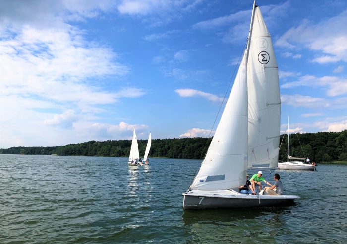Istotnym elementem zajęć jest reagowanie w sytuacjach awaryjnych. Przećwiczysz manewr podejścia do osoby znajdującej się w wodzie oraz nauczysz się podejmować szybkie i skuteczne decyzje pod presją czasu. Omawiamy również sposoby dostosowania ożaglowania do zmieniających się warunków, tak aby żeglowanie było bezpieczne i komfortowe.